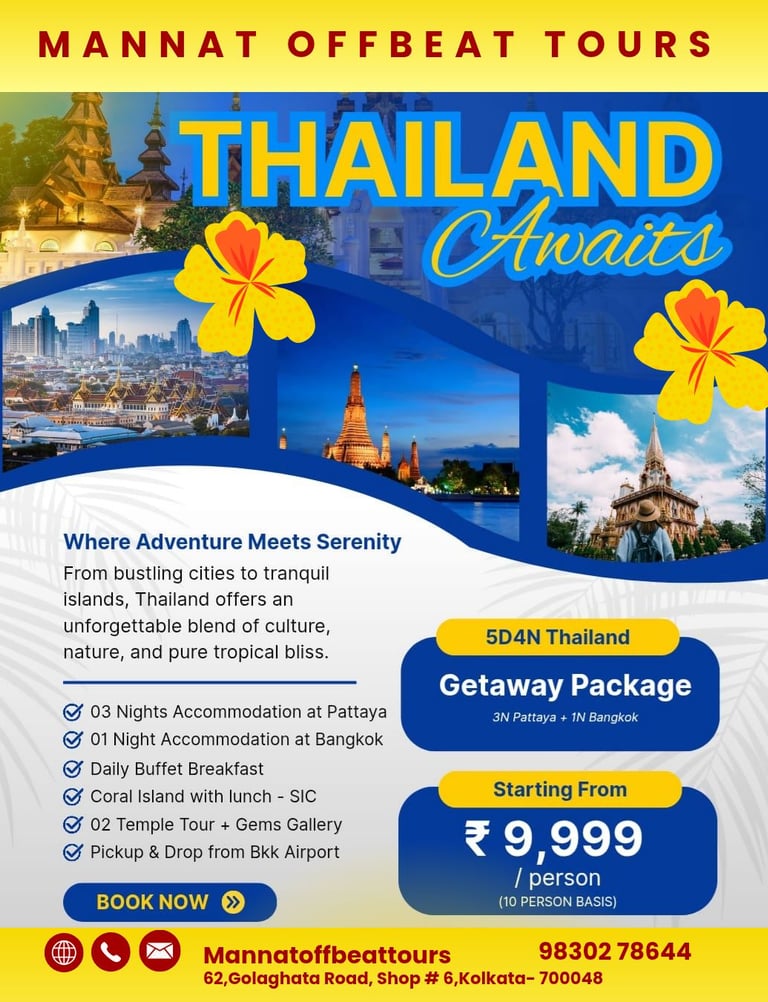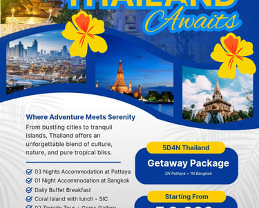 Don't miss out on our incredible 4-Night/5-Day adventure to Pattaya & Bangkok! This special offer from Mannat Offbeat Tours is only valid for travels made until March 7th, 2026!